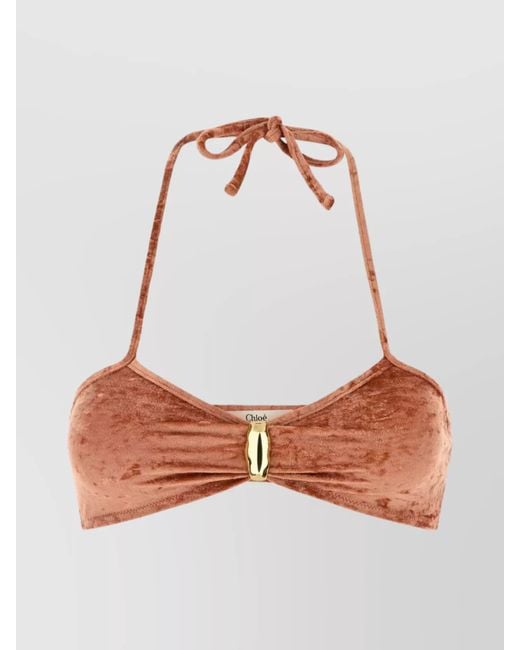 Women's Halter Neck Velvet Bikini Top With Hardware