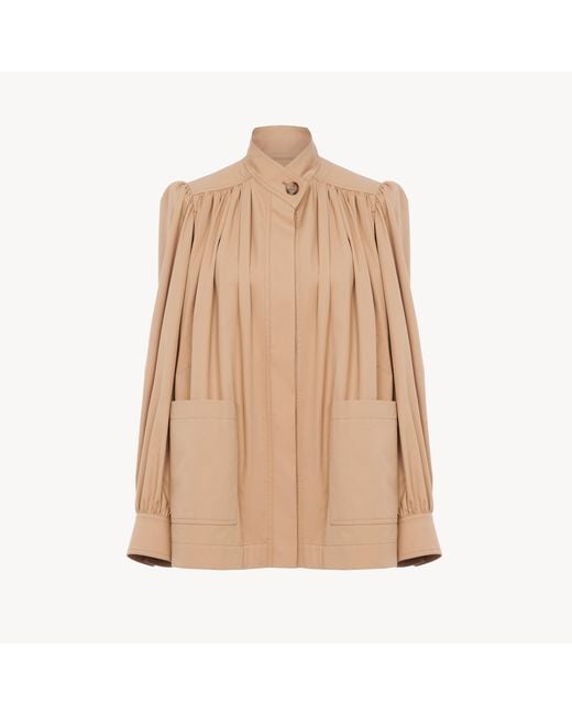 Women's Natural High-neck Gathered Jacket In Cotton Gabardine