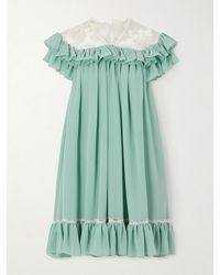 Chloé Women's Green Mini Ruffled Dress In Silk Mousseline