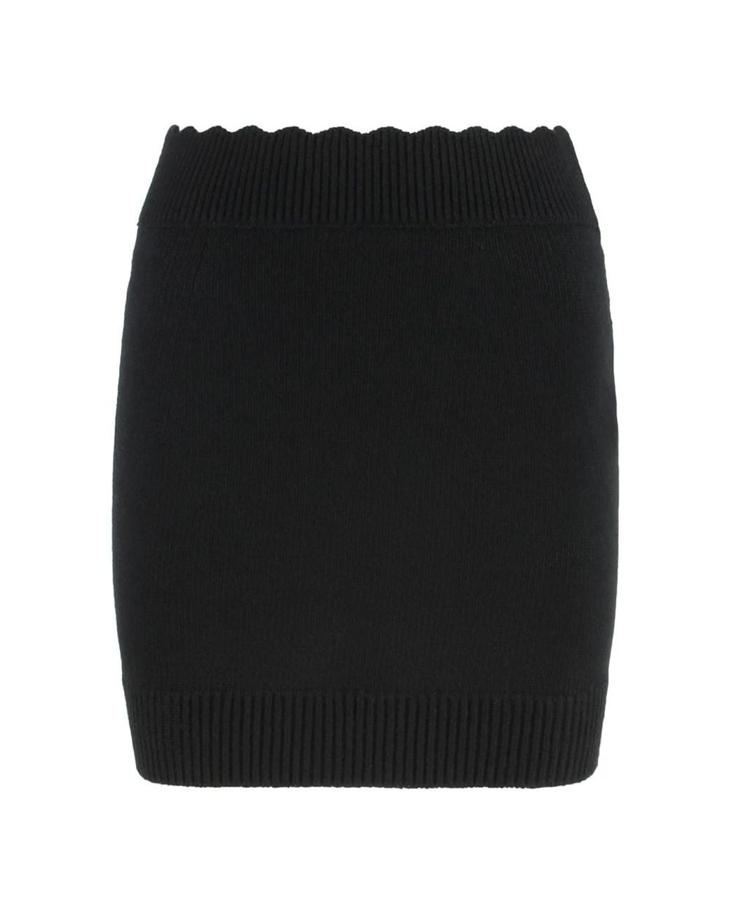 Chloé Fitted Mini Skirt in a wool and cashmere knit, designed with a scalloped waist and ribbed trims for a refined, easy-to-style silhouette. Key attributes: Black | Wool and cashmere | Slip-on design | Scalloped waist | Ribbed trims | Knit texture | Mini length | Dimensions & fit: Fitted | Mini length | Composition & care: 70% Wool | 30% Cashmere | Dry clean only Colour: black