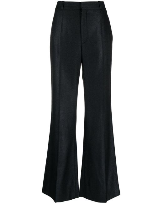 Women's Black Wool And Silk Blend Flared Leg Trousers