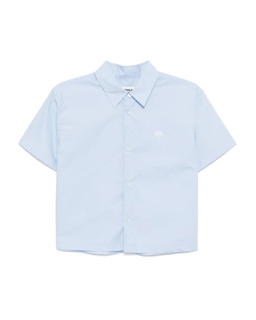 Blue front button fastening classic collar straight hem Size: XS. Gender: Female. Material:Cotton. Colour: blue