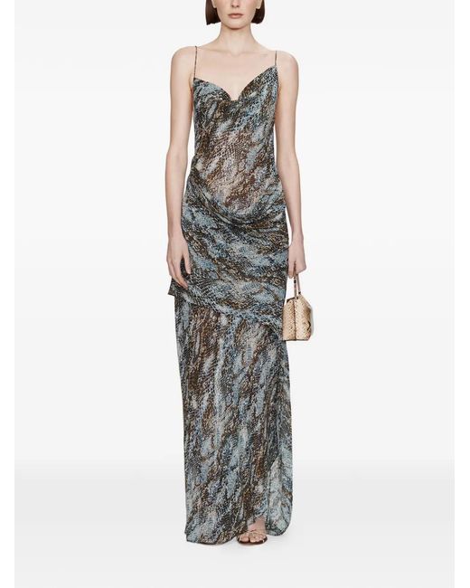Women's Blue Cowl-Neck Printed Maxi Dress
