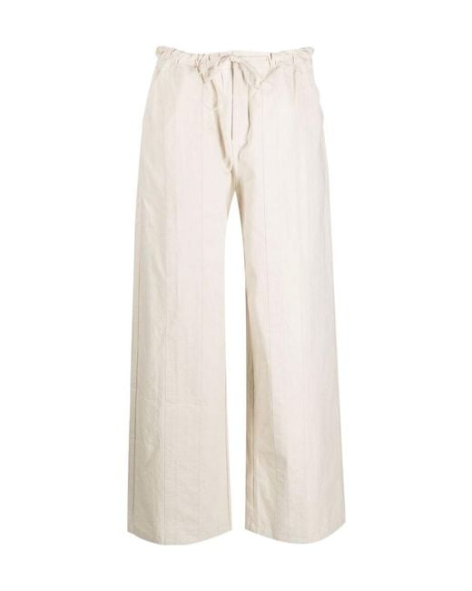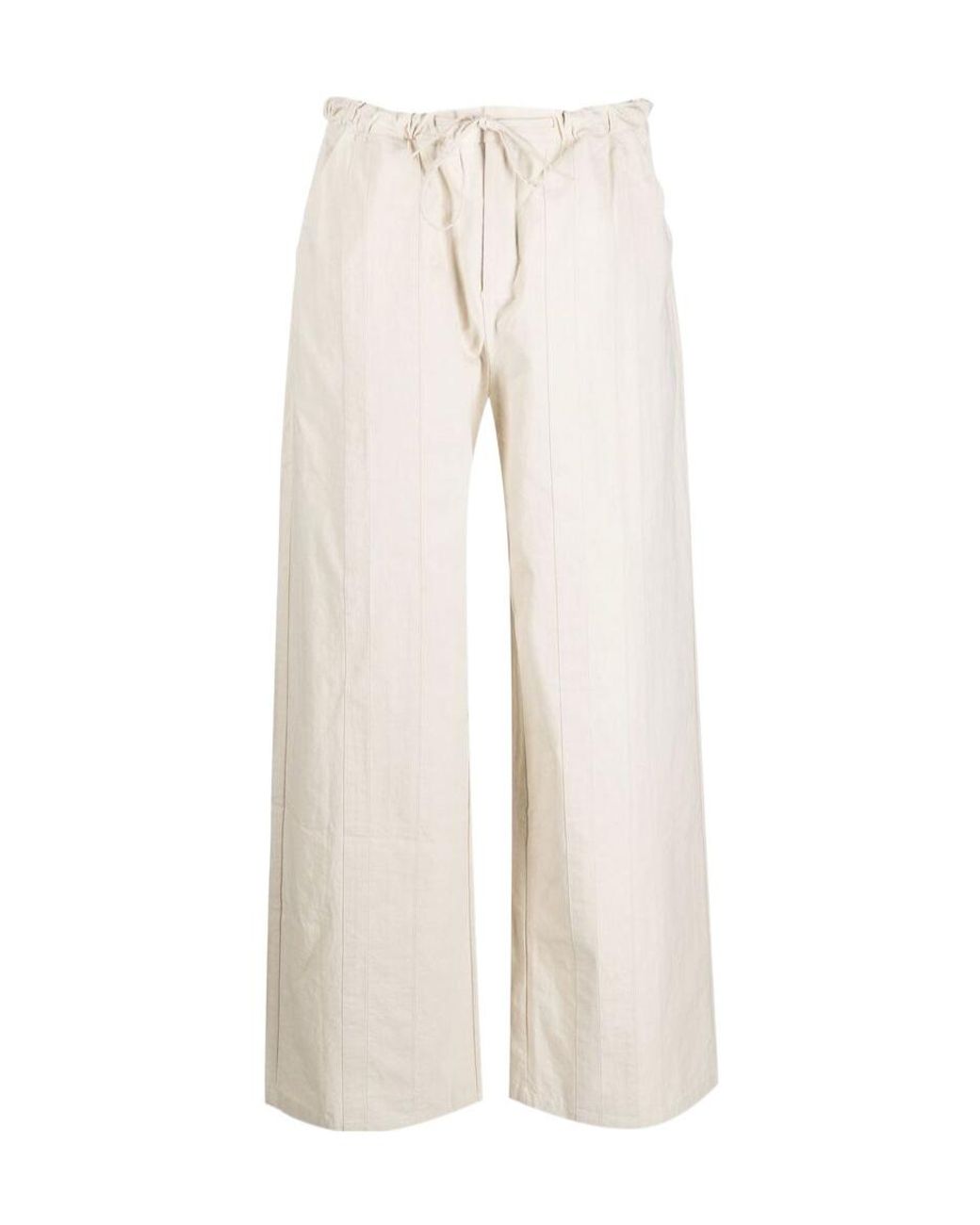 Women's White Drawstring-Waist Straight-Leg Trousers