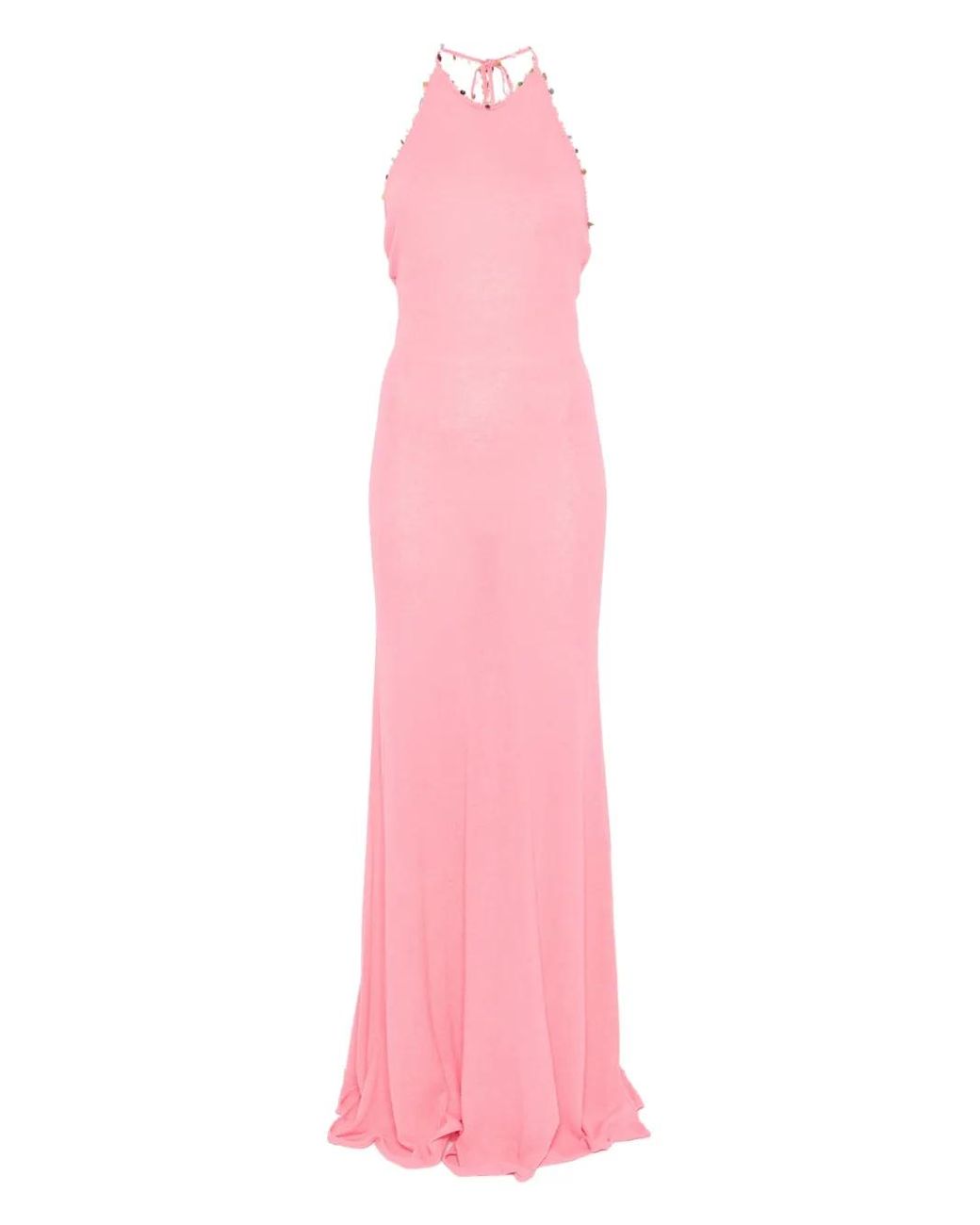 Women's Pink Beach Quartz Embellished Halterneck Maxi Dress