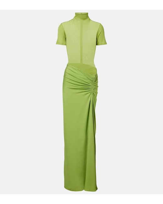 Women's Green Fusion Gathered Ribbed-Knit Gown