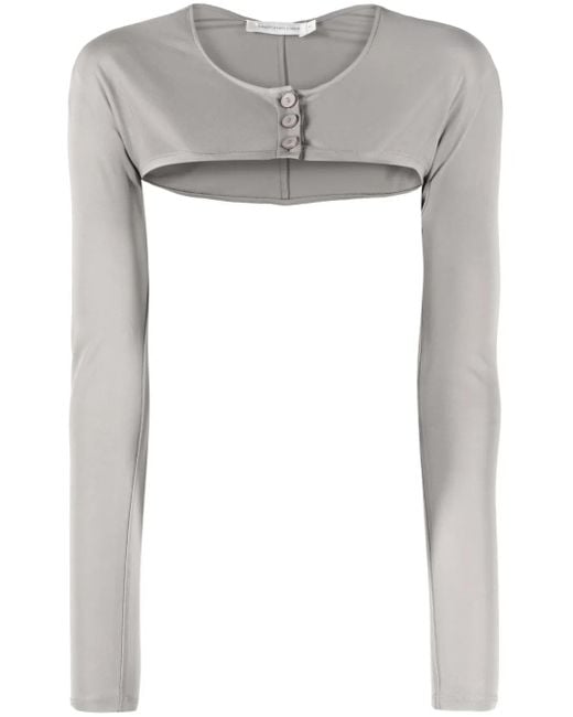 Women's Grey Long-Sleeve Cropped Top