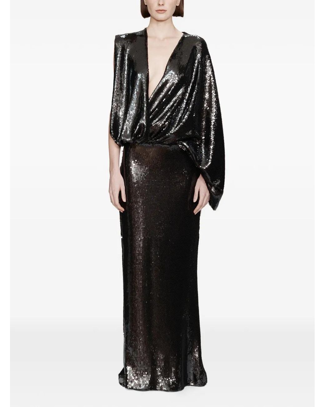 Women's Black Opaline Sequin Swaddled V-Neck Gown