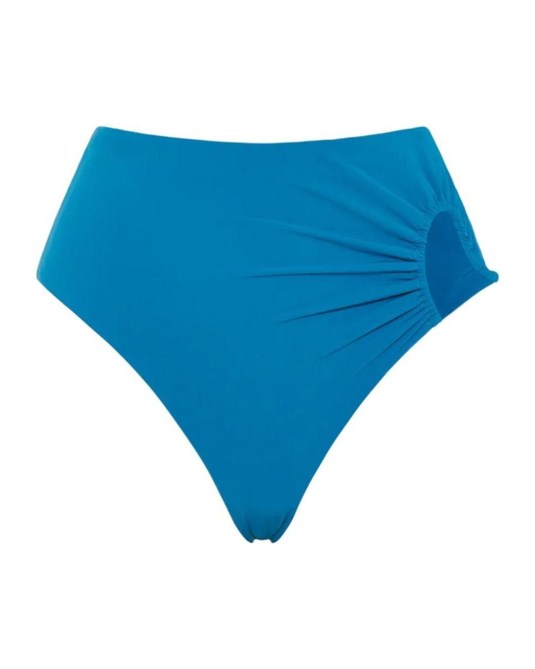 Women's Blue Ruched Crescent High-Waist Bikini Bottom