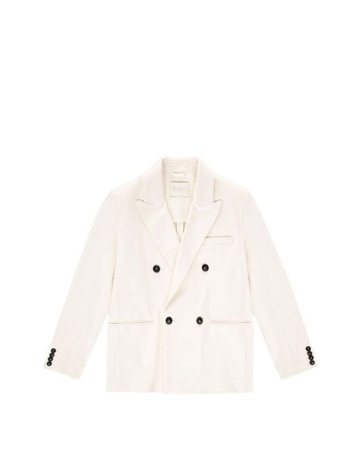 White button detail double-breasted notched lapels patch pocket long sleeves Colour: natural