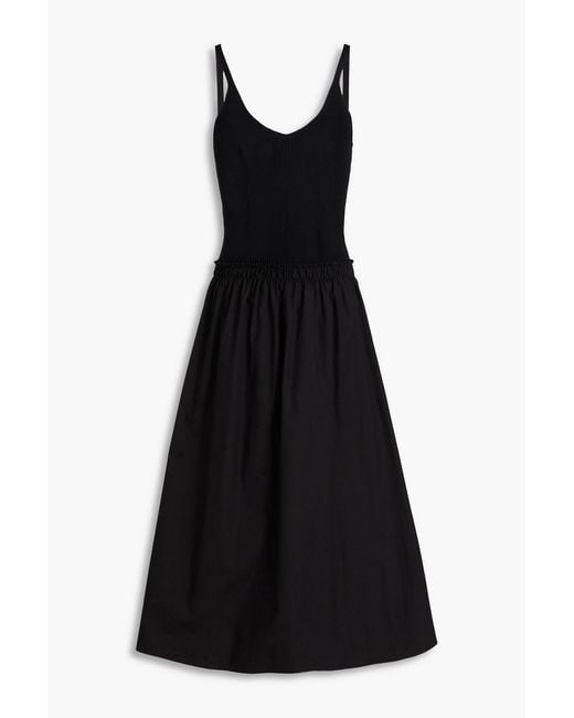 Women's Black Cotton-Poplin And Ribbed Jersey Midi Dress