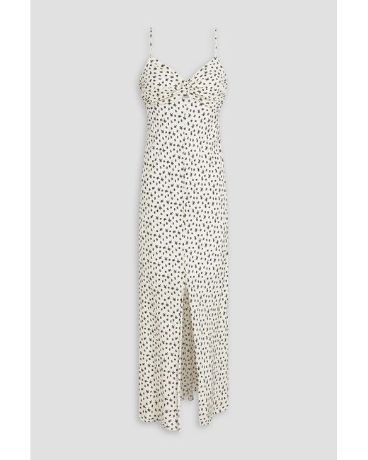 Women's White Twisted Cutout Floral-print Satin-twill Maxi Dress