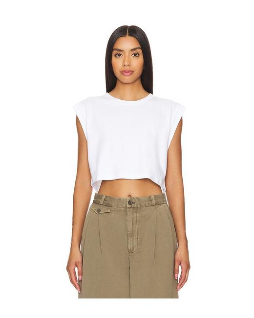 CLYQUE David Crop Top in White. Size L. Also in M, S, XL. CLYQUE David Crop Top in White. Size M, S, XL. 100% cotton. Made in USA. Machine wash. Pull-on styling. Jersey knit fabric. CLYR-WS1. DAV-CROP-WHT.