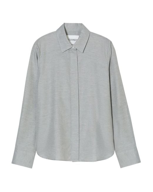 Grey collared neck button fastening long sleeves curved hem buttoned cuffs Size: XS. Gender: Female. Material:Cashmere/Cotton. Colour: grey