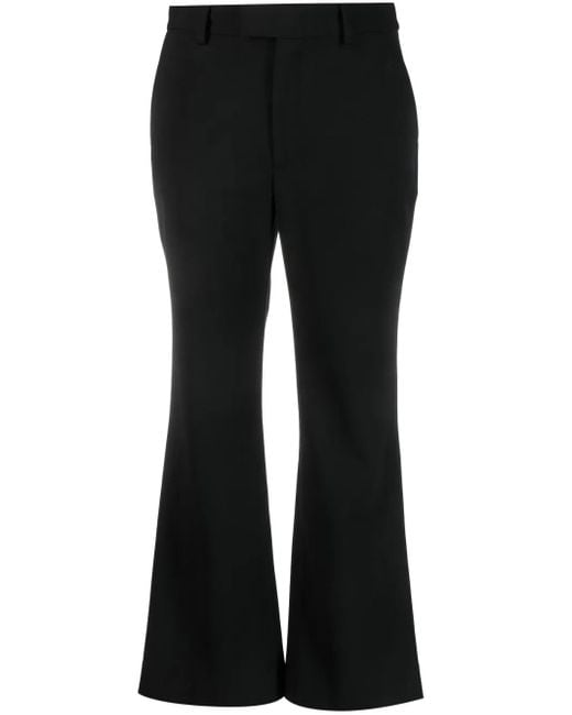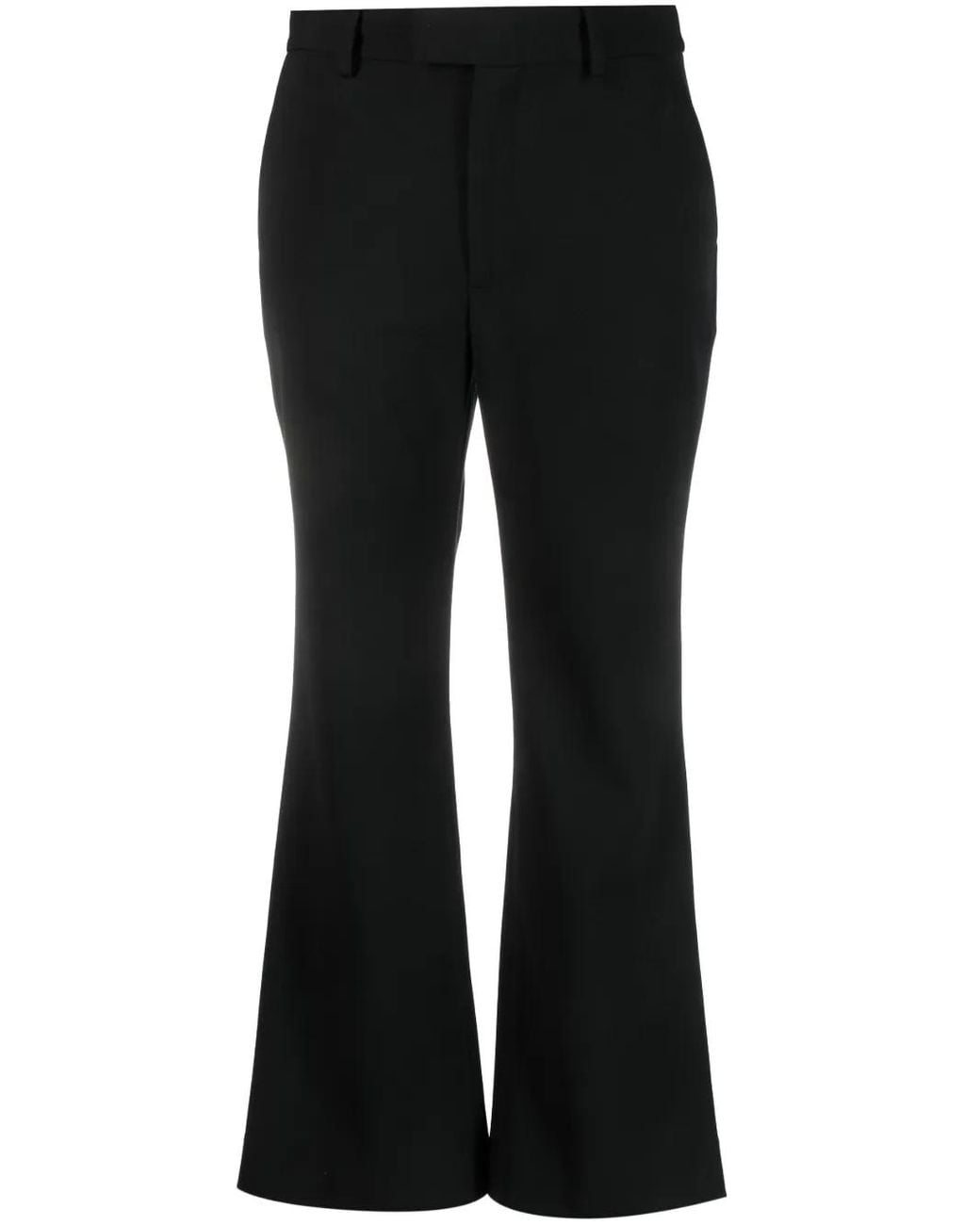 Black concealed fly and button fastening two side inset pockets rear jetted pocket belt loops flared high waist cropped straight hem Size: 29. Gender: Female. Material:Polyester/Virgin Wool/Elastane. Colour: black