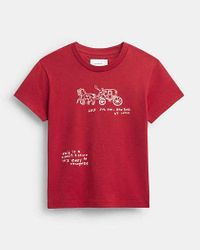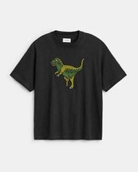 Go to COACHThis '90s-inspired T-shirt dress features a playful collage graphic with a whimsical take on Coach iconography and California surf culture. Crafted of soft cotton the long silhouette is finished with a side vent