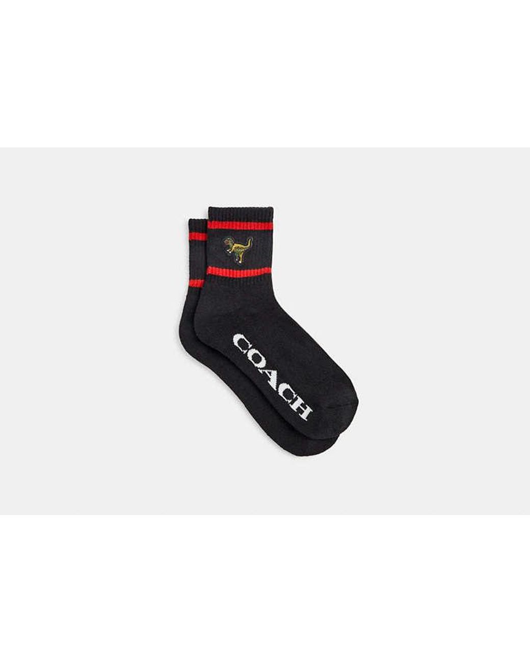 These soft cotton-blend quarter-crew socks feature our fun-loving Coach mascot Rexy. The sporty style is finished with a ribbed cuff. | Rexy Quarter Crew Socks in Black, Size Large/X-Large | Cotton