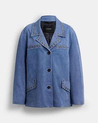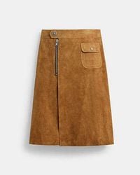 Go to COACHCrafted of super soft suede this mini skirt features a true wrap design with a button and tie closure at the waist. The A-line silhouette is finished with our Signature lining. | Women's