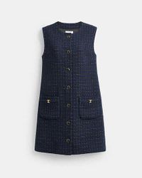 Go to COACHA modern take on a classic style this short sleeve dress is crafted of a lightweight cotton-blend boucle. The collarless design is finished with patch pockets and our Signature enamel buttons for a