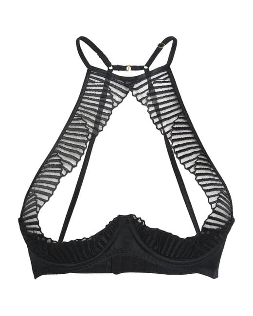 Created to captivate, the Athena quarter cup bra from Coco De Mer blends delicate embroidery with directional silk strapping. The minimal coverage draws focus to your curves, while the halter shape sculpts the décolletage, amplifying the sensuality and allure of the piece. Colour: black
