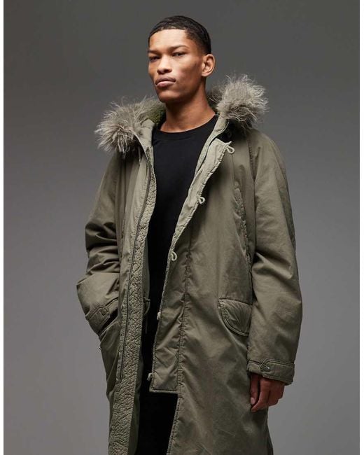 Longline Parka Jacket With Faux Fur Hood - Natural