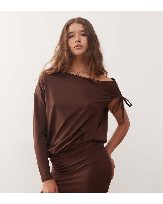 - Ruched Asymmetric Mini Dress