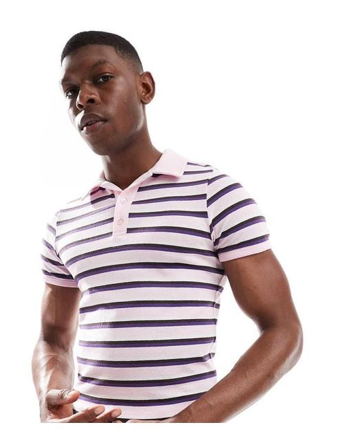 T-Shirts & Vests by Collusion Stripe design Polo collar Partial button placket Short sleeves Logo embroidery to back Regular fit. Cotton. Colour: pink