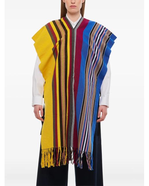 Blue V-shape neck sleeveless vertical stripes fringed hem cotton Size: One Size. Gender: Female. Material:Cotton. Colour: blue