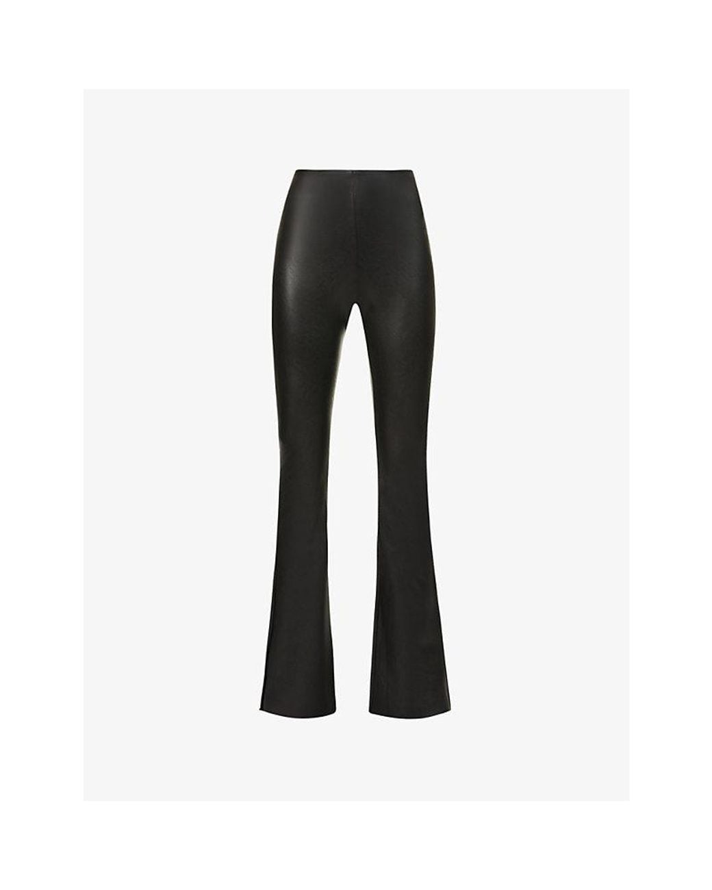 Women's Black Flared Mid-Rise Faux-Leather Leggings
