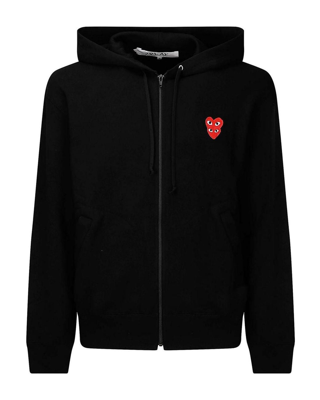 Black sweatshirt with zip and hood Double application on the front Colour: black