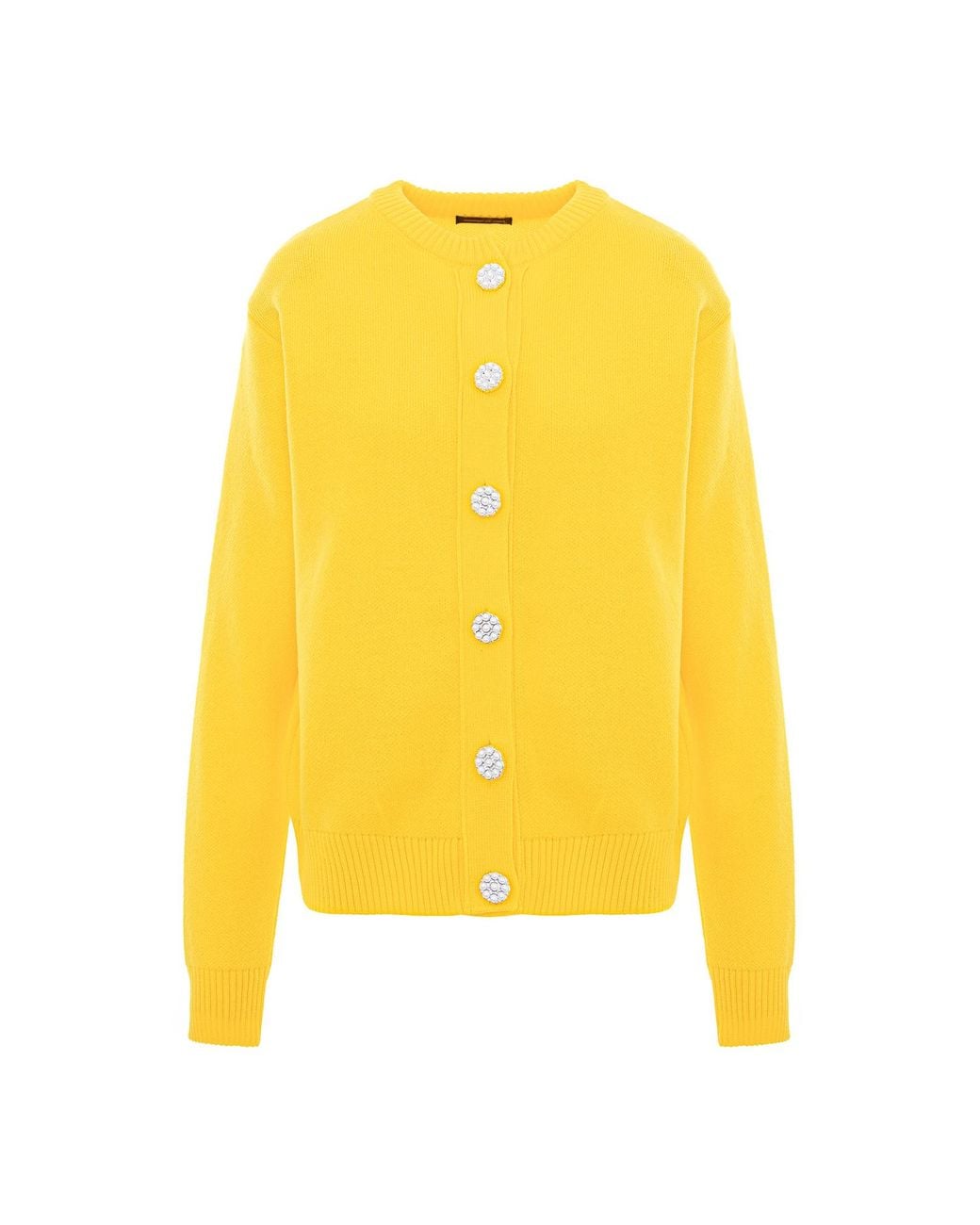 Limited capsule Daisy Knitwear - delicate knitwear pieces, paying homage to this symbolic flower Oversized cardigan, knitted with daisy buttons, in yellow. The product is medium length, versatile and feminine, suitable for both trousers, skirts and dresses. For the photos we used size XS. 50% polyester + 50% cotton Dry cleaning is recommended or a very gentle and warm wash at 30°C maximom. Colour: yellow