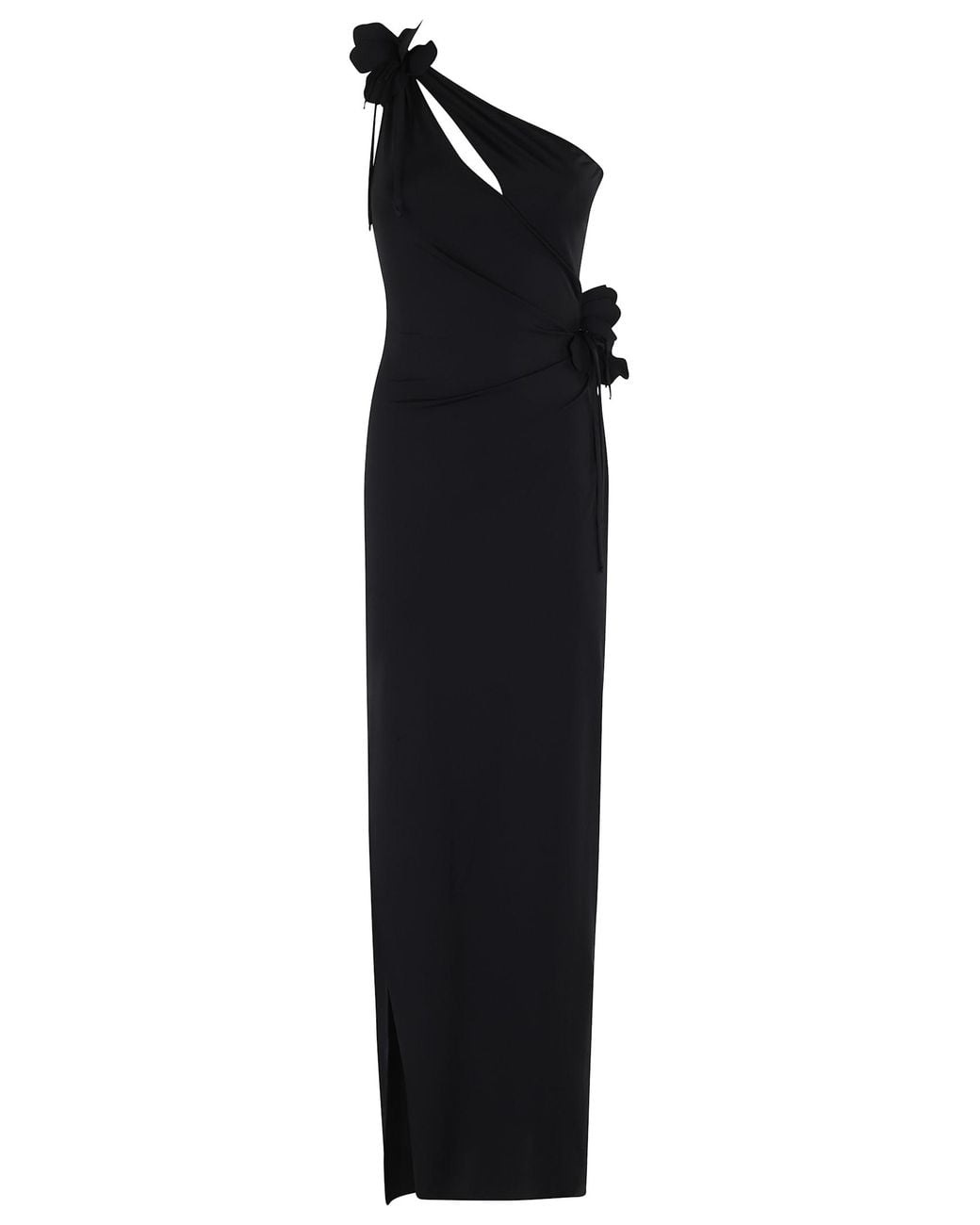 Women's Black Asymmetric Flower Gown