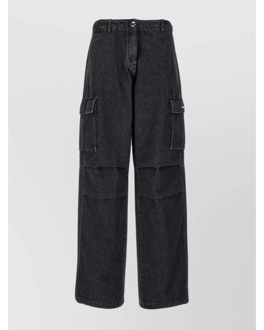 Women's Blue Denim Wide-Leg Cargo Trousers