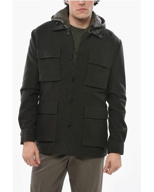 Men's Black Cc Collection Wool Blend Utility Jacket With Removable Quilt