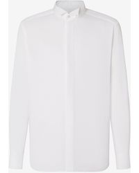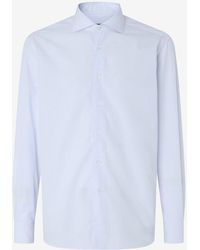 Go to CornelianiDesigned for everyday elegance without sacrificing comfort, this white long-sleeved shirt is made from pure cotton with a delicate blue micro stripe pattern. The soft feel and impeccable construction make it an essential