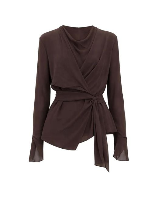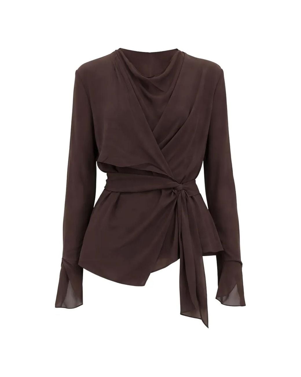 Grey asymmetric hem flared cuffs tie detail draped Size: 36. Gender: Female. Material:Silk. Colour: brown