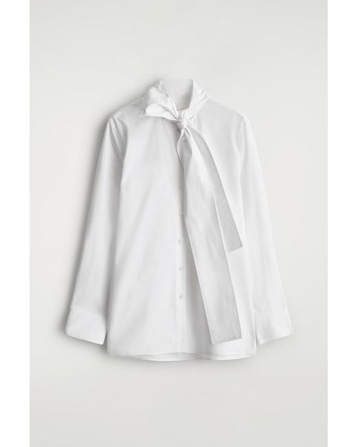 This season's ready-to-wear collection channels a modern femininity. Rendered in crisp cotton, this refined blouse is cut in a classic shape and designed with a tonal bow that ties neatly at the neck. Style it with skirts or tailoring. Regular fit. Button closure. Machine wash Back length of size EU 36 is 69.8cm / Model wears a size EU 36 COS Women's Bow-Detail Cotton Blouse in White Colour: white