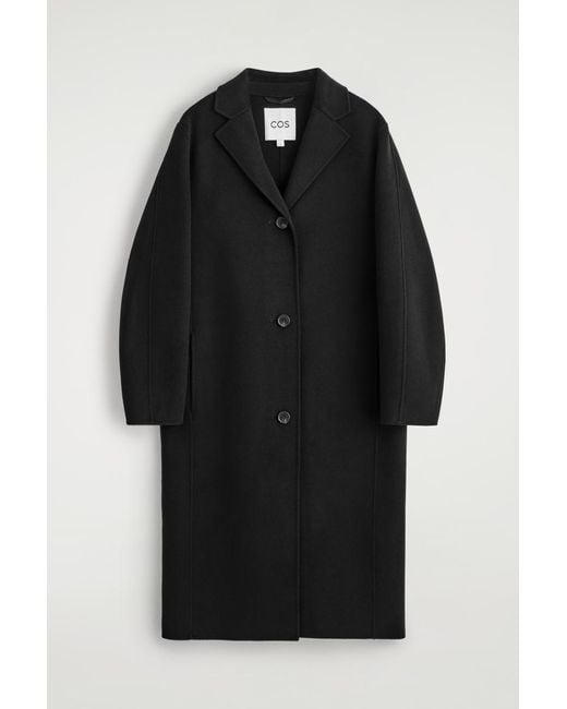 The Autumn Winter 2025 collection spotlights sophisticated shapes and luxuriously soft fabrics. This refined coat is made from RWS wool and TENCEL™ Lyocell that's double-faced for a premium handle and designed with notch lapels that can be folded up to be styled as a funnel neck. Regular fit. Button closure. This product contains Responsible Wool Standard TE-00047206 (RWS) wool fibre from farms certified to animal welfare and land-management requirements Shell: 60% RWS Wool, 40% TENCEL™ Lyocell. Excluding trims / Dry clean Back length of size S is 110.5cm / Model wears a size S COS Women's Double-Faced Wool Long Coat in Black Colour: black