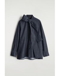 Go to COSThis season, the COS womenswear designers reimagine the denim shirt with classic leisurewear codes. Washed a deep-indigo hue, it's made from organic cotton blended with TM Lyocell for fluidity and features a longer