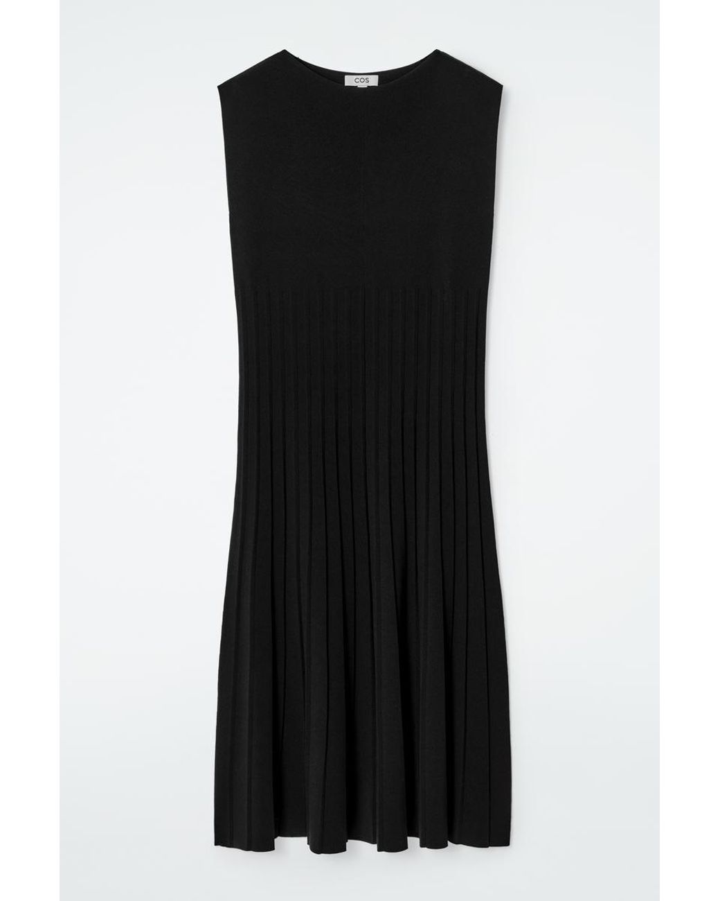 Channelling a modern elegance, this maxi dress is designed in a sleeveless silhouette with pleats that suspend from the waistline. It's knitted from a cotton blend and rendered in a classic black tone that's effortless to style. Regular fit Recycled nylon (polyamide) reduces our demand on limited natural resources and reduces greenhouse gas emissions Shell: 56% Viscose, 29% Cotton, 14% Recycled polyamide (Recycled nylon), 1% Recycled elastane. Excluding trims / Machine wash Back length of size S is 120cm / Model wears a size S.