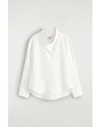 Go to COSThis season, the COS womenswear team reimagine the classic cotton shirt with subversive touches. Tailored in a relaxed shape, it's designed with a modern funnel neck that can be fastened to the top