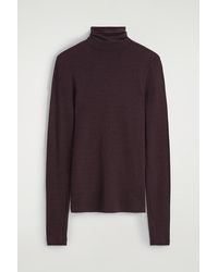 Go to COSThe COS designers reframe the classic jumper for soirée season. Cut in a defined silhouette, this seamless piece is knitted from ultra-fine merino wool and flecked with metallic threads that subtly catch the