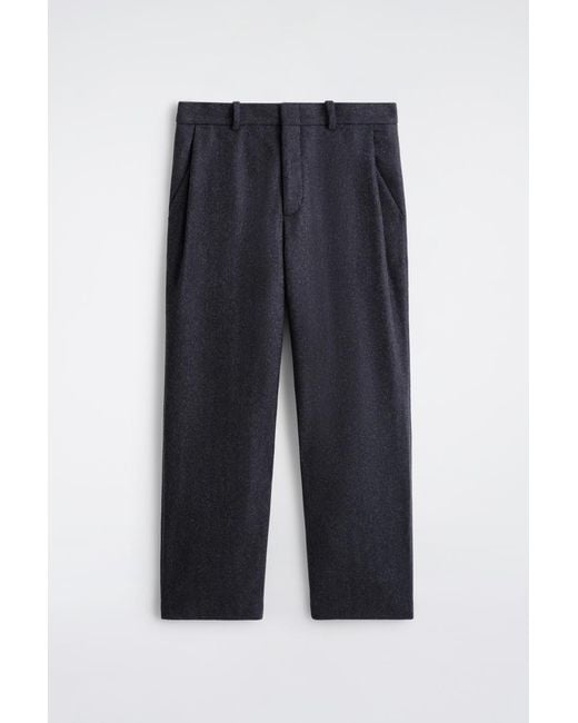 The tapered trouser is a signature of the COS menswear wardrobe. Crafted from a recycled-wool blend, this pair is cut in a relaxed fit with subtle pleats, side pockets and a concealed front fastening. Style them with knitwear or a crisp shirt. Relaxed fit. Hook, bar and zip closure. Recycled wool is made from yarn-spinning waste, yarn overstock, production-cutting waste and post-consumer garments - creating new pieces without waste Shell: 58% Recycled wool, 30% Recycled polyester, 10% Recycled polyamide (Recycled nylon), 2% Elastane. Excluding trims / Dry clean Inside leg length of size EU 48 is 77.8cm / Model wears a size EU 48 COS Men's Wool Relaxed-Fit Tapered Trousers in Blue