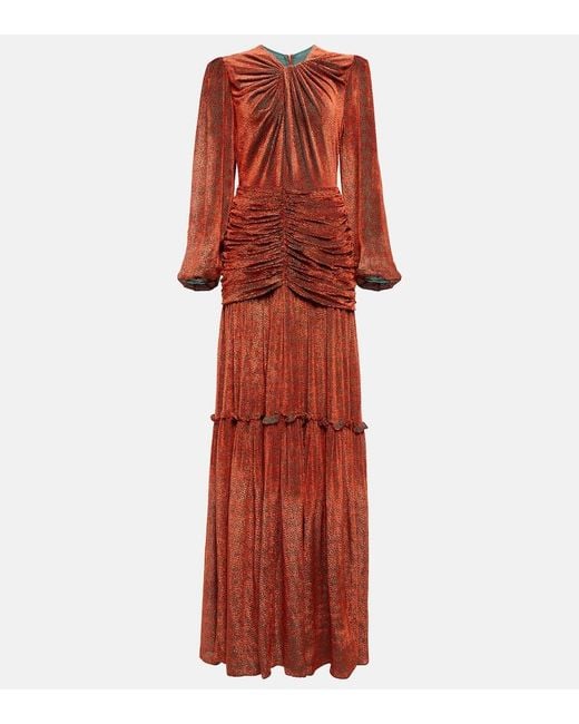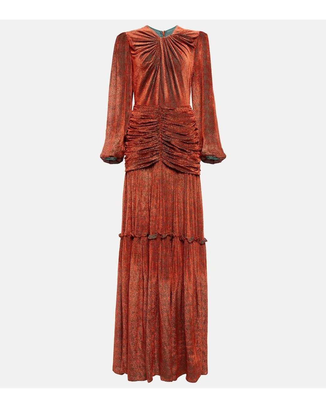 Women's Brown Sabrina Ruched Devoré-velvet Gown