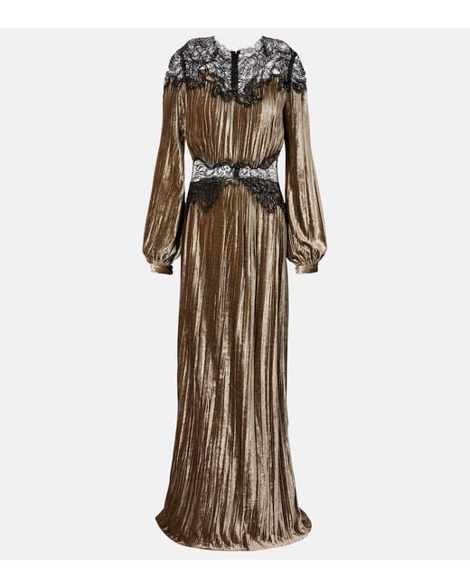 - Senna Lace-Trimmed Plisse Velvet Gown