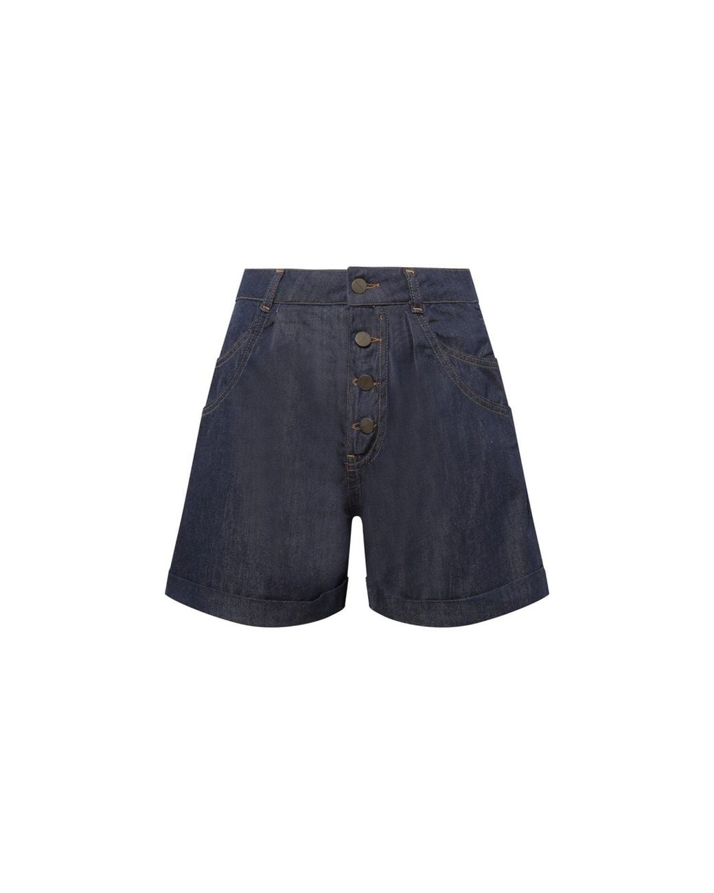 Relaxed fit with a modern touch, these high-waisted denim shorts offer effortless style for warm-weather days. Designed to flatter with a structured silhouette and statement buttons, they blend timeless charm with a fresh, contemporary feel. Your go-to essential for sunny outings, weekend escapes, or laid-back afternoons. Cotton 100% Machine wash cold with like colours Wash inside out to preserve colour and hardware Do not bleach Tumble dry low or line dry for best results Iron on medium heat if needed, avoiding buttons Do not dry clean Colour: blue