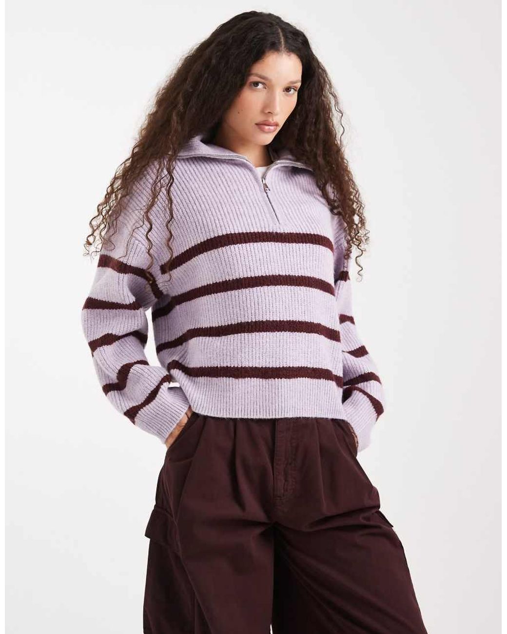 Jumpers & Cardigans by Cotton On Stripe pattern High collar Half zip fastening Long sleeves Ribbed trim Relaxed fit Colour: purple