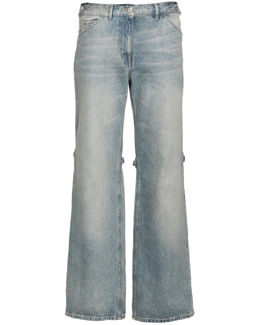 Light blue cotton washed denim whiskering effect at the thighs embroidered logo to the rear strap detailing high-rise belt loops concealed fly and button fastening classic five pockets wide leg Size: 38. Gender: Female. Material:Cotton/Cotton.