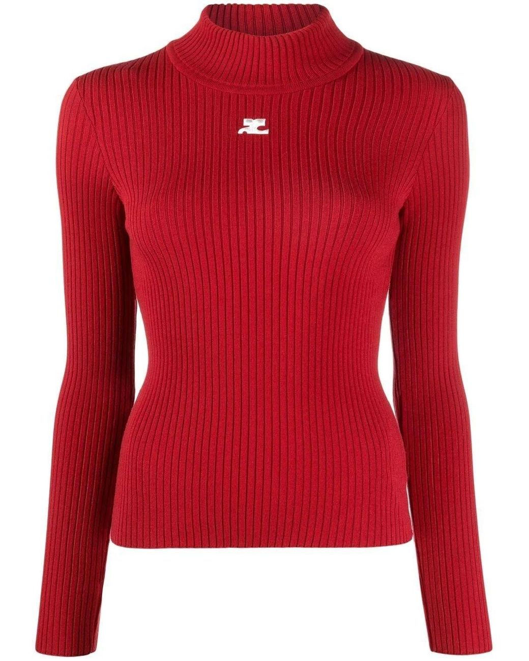 - Fitted Ribbed Knit Sweater With Embroidered Logo