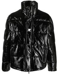 Courreges Men's Brown Logo-Patch Hooded Puffer Jacket